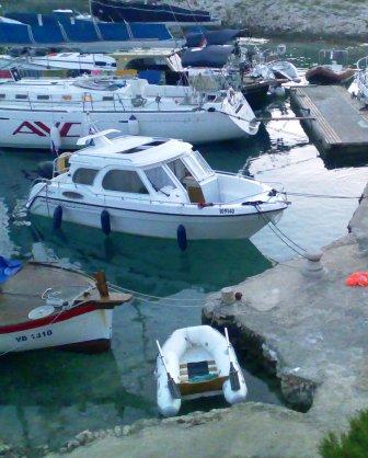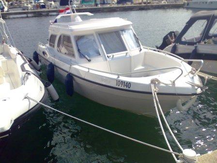 Solidní finská kajutová motorová loď praktické severské koncepce vhodná na řeky i na more s průchozí kajutou z přídě i zádě uzavřenou šoupacími dveřmi. V kajutě kuchyňka s dřezem inox a vodou, lihový vařič ORIGO, sezení do U u excentricky uloženého stolu pro 4 osoby, pohodlné spaní pro 2+2. Na palubě množství odkládacich prostor, samostatná kotevna, na přídi excentrické upevnění stolu, madla pro bezpečný pohyb na palubě, protiskluzný povrch, koupací plato schůdky do vody a další. Hmotnost samotné lodi pouze 1000kg, šiřka 2,50m-bezproblemová přeprava za OA. Kompletní specifikace základního vybaveni modelového roku 2011 na vyžádaní.