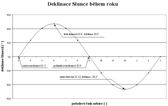podle data měření, musíme v tabulkách najít deklinaci Slunce pro dané datum a provést korekci. (maximální možná oprava je ?23,5°)