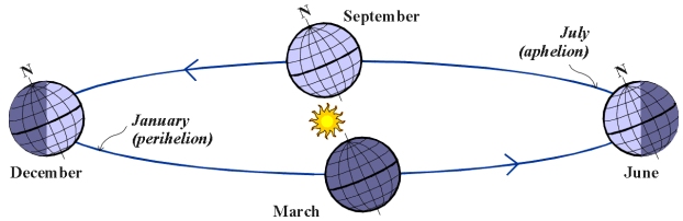 Díky tomuto sklonu zemské osy se mění tzv. deklinace Slunce v závislosti na datu. Nulová bude v den rovnodennosti a maximální (oněch 23,5°) v den slunovratu. To jsou právě ty okamžiky, kdy začíná jaro, léto, podzim a zima.