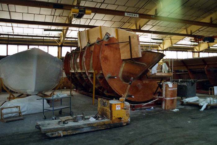 Než se však pustíme do prohlídky výroby, musím uvést, že firma Jeanneau Newco, která patří do největšího evropského "loďařského" koncernu Jeanneau-Benéteau, není jen výrobcem plachetnic, ale i celé řady motorových člunů. Každý rok se zde vyrobí více než jeden tisíc plachetnic, a celá řada motorových člunů, které nacházejí své majitele po celém světě. Pro letošní podzim připravili v Jeanneau nové modely. Z plachetnic jsou to SUN 2000 (nová Sun Fast 20), Sun Odyssey 37, Sun Odyssey 43DS, Sun Fast 40. V řadě motorových člunů jsou novinkami pro rok 2000 Cap Camarat 515, Cap Camarat 565WA (walk around), Leader 805 a Prestige 36. K většině těchto novinek se vrátíme v brzké budoucnosti abychom Vás s nimi podrobně seznámili.