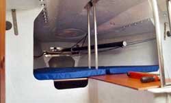 Jak už bylo v úvodu řečeno, kajuta u dvacet šestky byla přizpůsobena zcela závodnickému poslání a je tedy relativně malá a spartánsky vybavená. To ale nebrání tomu, aby se tu pohodlně vyspali čtyři členové posádky. Chci říct, že v kajutě se nalézají čtyři dostatečně dimenzovaná lůžka. O pohodlí, pokud jde o přístup k nim nemůže být řeči. V kajutě najdeme i stolek. Praktické je i čalounění matrací, které je odolné vůči zvýšenému namáhání.